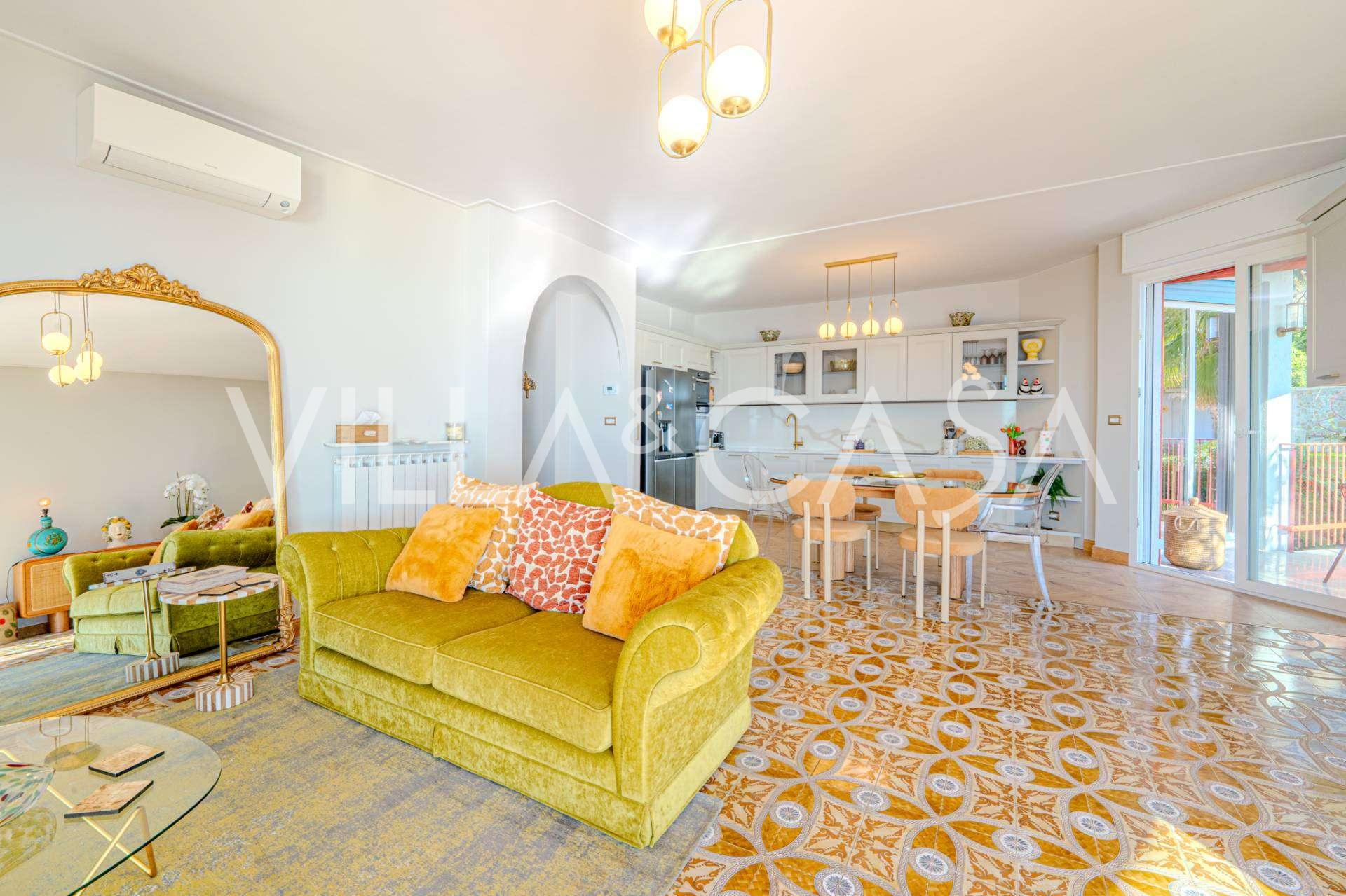 유명한 휴양 도시 산레모의 첫 번째 라인에 위치한 약 130m²의 우아한 아파트가 엘리베이터가 있는 고급 건물의 1층에 임대됩니다.
