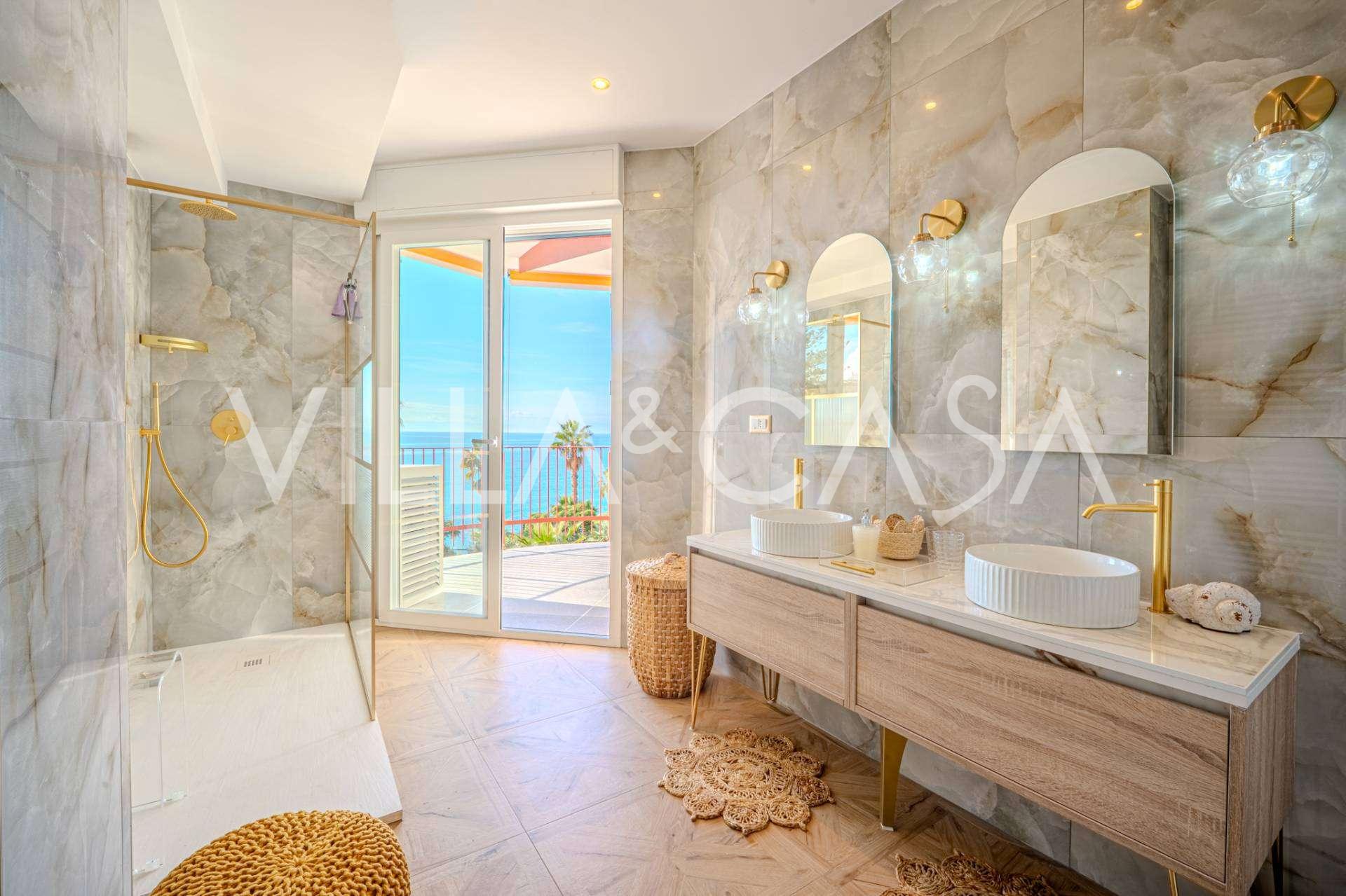 아파트의 내부는 현대적인 편안함과 아늑한 분위기를 결합하고 있습니다. 넓은 현관은 개방형 주방이 있는 멋진 거실로 이어지며, 창문을 통해 바다의 숨막히는 전망을 감상할 수 있습니다. 거실에서는 리구리아 해안의 파노라마와 산들바람을 즐길 수 있는 두 개의 발코니로 나갈 수 있습니다.