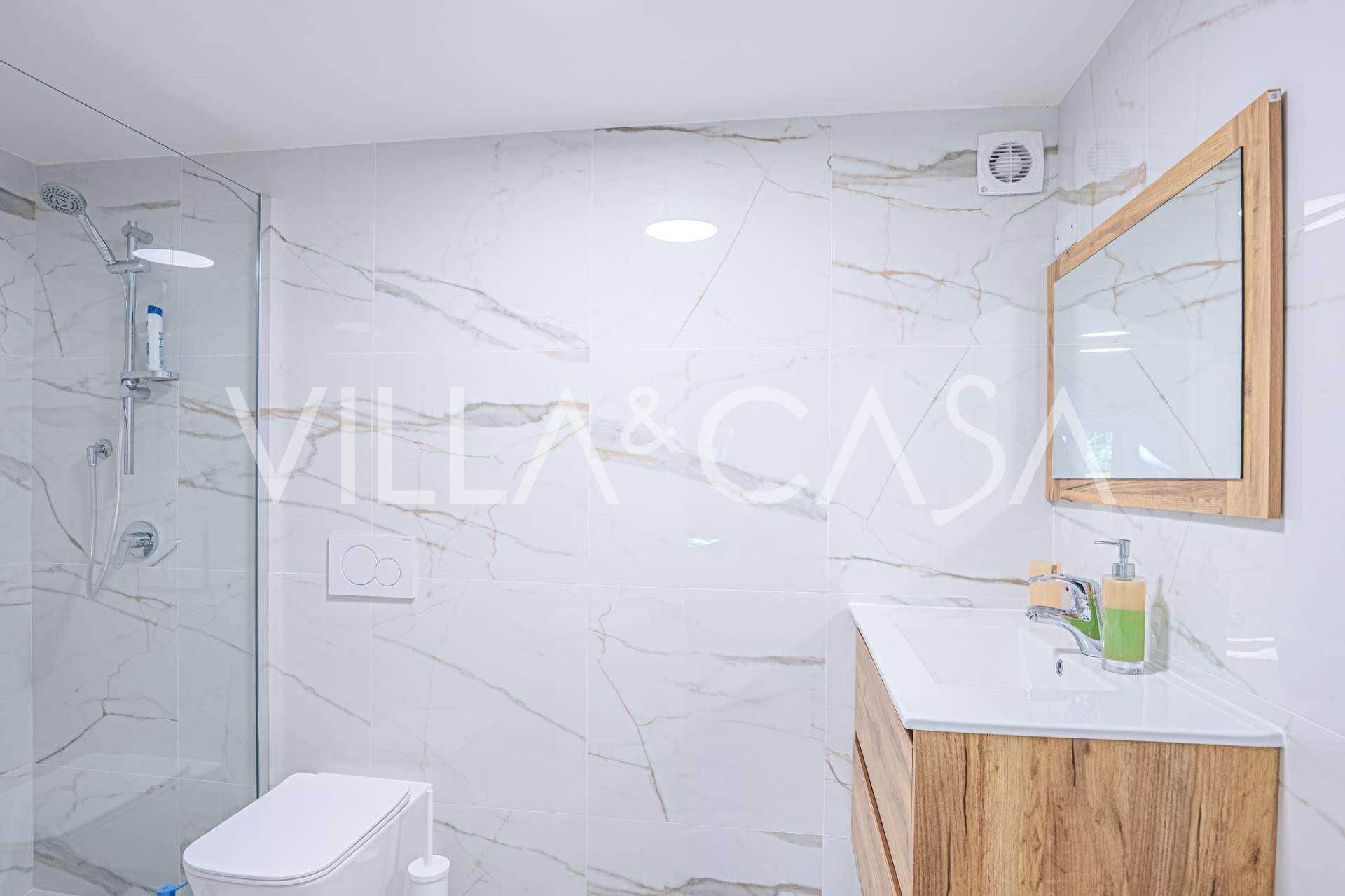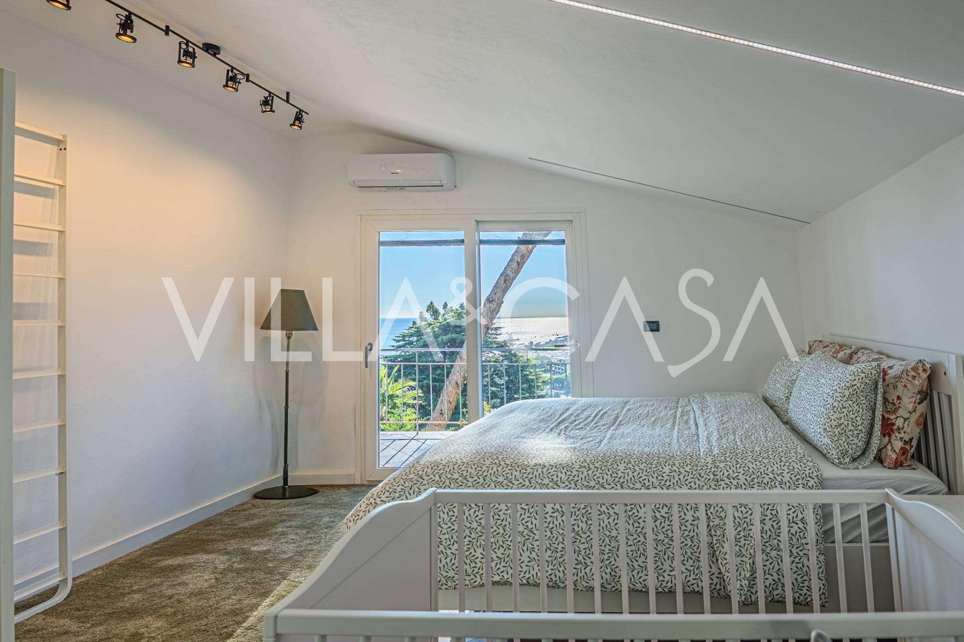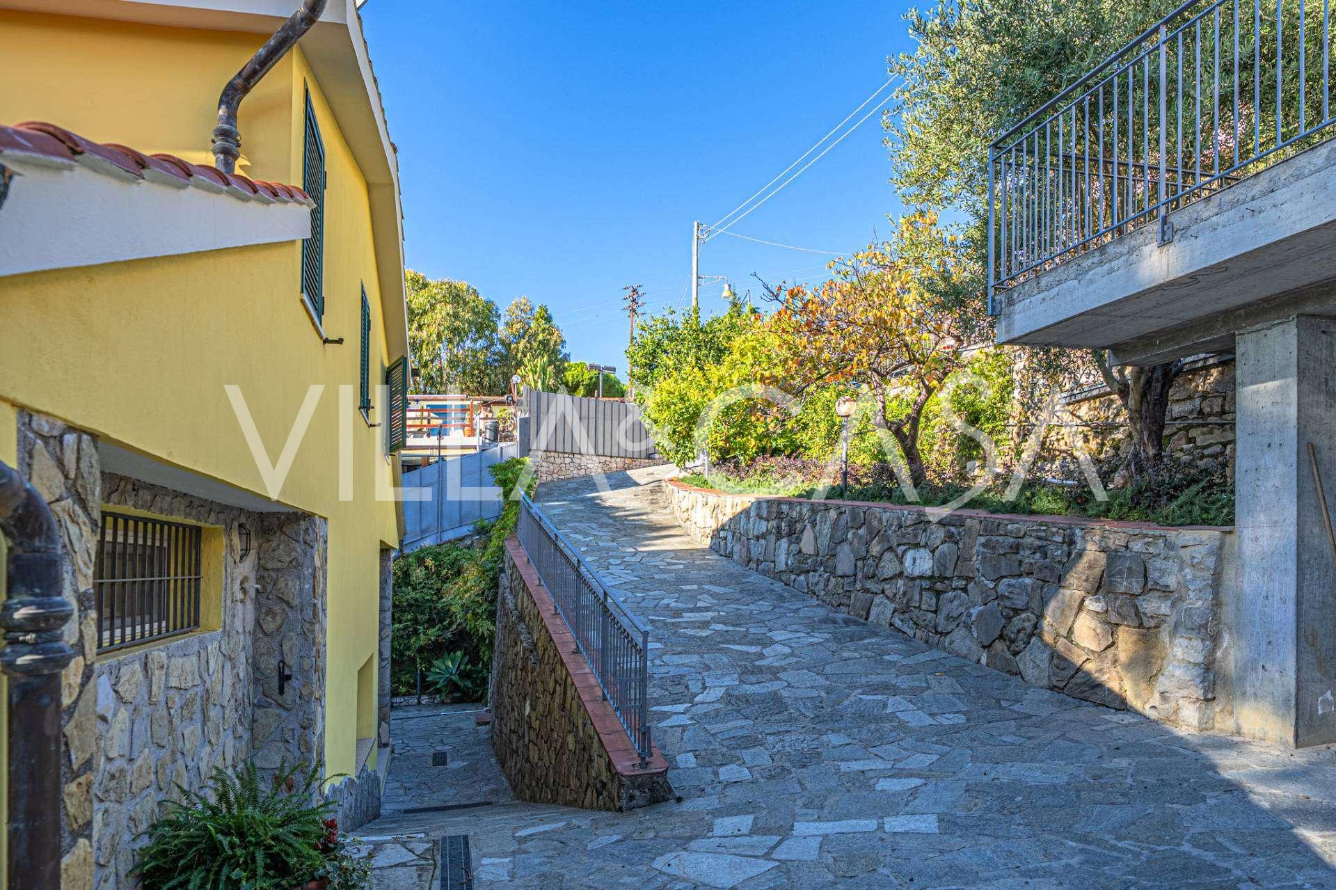 빌라는 조용한 주거 지역에 위치해 있으며, 세 개의 층으로 구성되어 있고, 잘 관리된 개인 정원으로 둘러싸여 있으며, 그곳에서 푸른 바다와 해안의 녹색 언덕을 바라볼 수 있는 매혹적인 전망을 제공합니다.