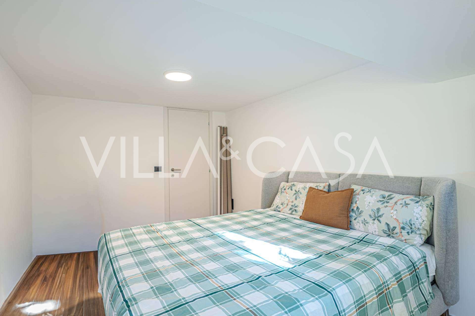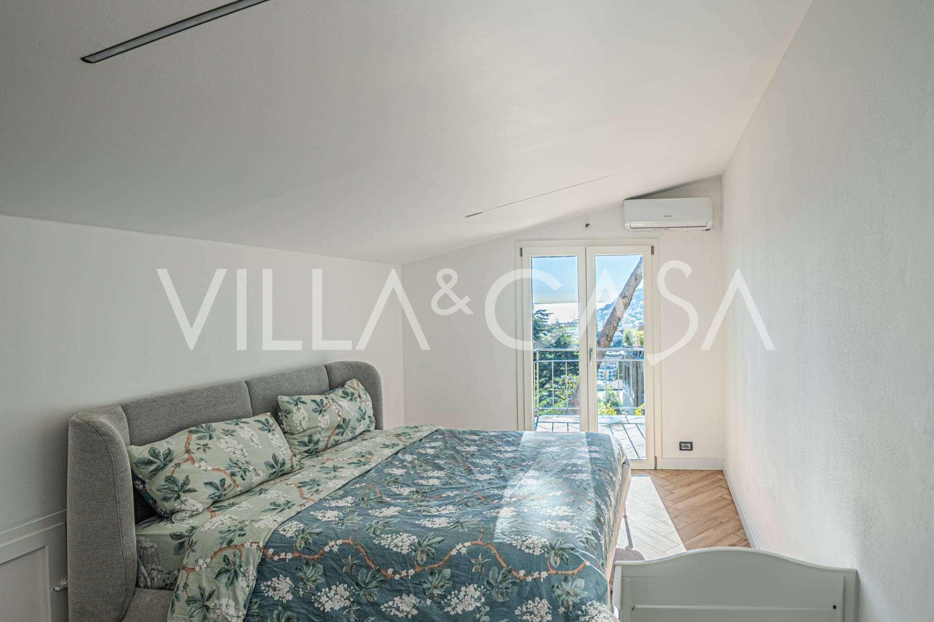 상층은 두 개의 넓은 침실로 구성된 프라이빗 존으로, 각각의 침실은 놀라운 파노라마 전망을 자랑하는 테라스로 연결됩니다. 리구리아 바다에 반사되는 아침의 일출과 저녁의 일몰은 평화롭고 로맨틱한 분위기를 조성합니다.